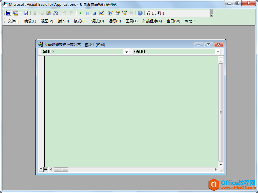 2.在弹出的VBA编辑器窗口中执行“插入”-“模块”命令,此时在窗口中央会弹出一个代码编辑窗口。