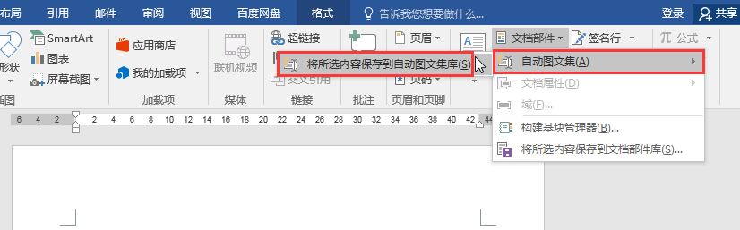 将图片保存到自动图文集库的好处是,以后任何时候想在其他文档中插入同样的图片,不用打开以前的文档找图片,直接在当前文档"文档部件"中的"自动图文集"里就可以调用了。