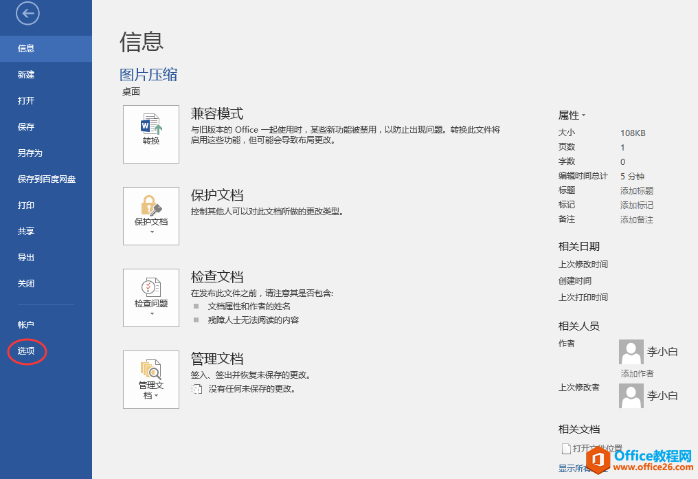 2、在弹出的界面左侧点击最下方的"选项"按钮。