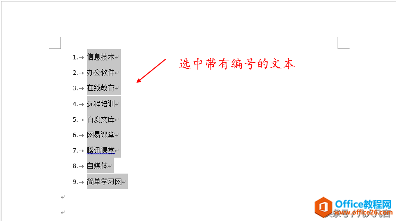 小结:编号与文本不能同时选择,要么选择编号,要么选中文本。
