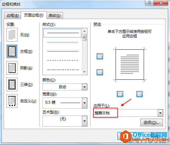 注:也可以选择其它的边框样式、设置边框的颜色和粗细