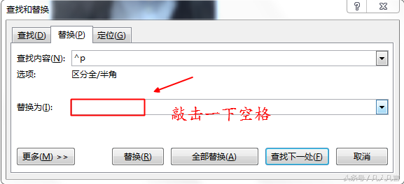 第三步:在【替换内容】中敲击一下空格键