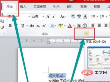 目的:将标题段文字("绍兴东湖")设置为二号蓝色空心黑体、倾斜、居中