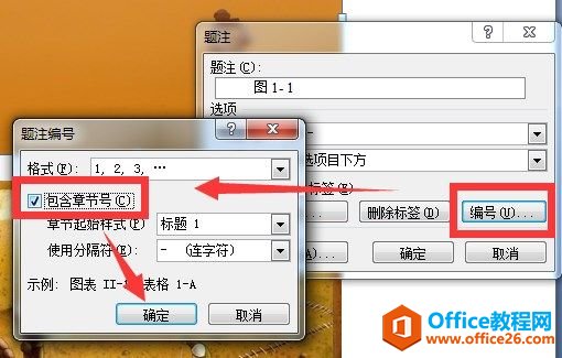 2.选择新建标签,设定标签名称,比如,图1-;选择位置在所选项目下方,确定,就可以看到自动插入的题注编号了;如果想要显示章节的编号,可以打开编号,勾选包含章节号即可。
