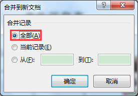 8、在"邮件"选项卡"完成"功能组中单击"完成并合并"按钮,在下拉列表中选择"编辑单个文档"命令。在弹出的"合并到新文档"对话框中,在"合并记录"下选择"全部",单击"确定"按钮。