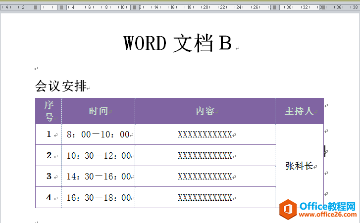 制作好了文档A,并在其中插入了一个“会议安排”表格,如果以后芳芳要制作文档B,也要插入文档A中一样的会议表格,怎么样在不重新查找、打开文档A的前提下快速实现这个效果呢?请往下看。