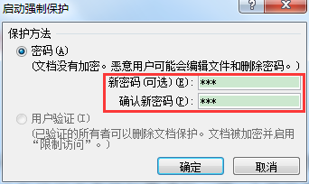 5、弹出[启动强制保护]对话框,输入新密码、确认新密码,单击[确定]按钮。