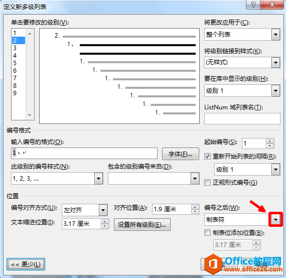 注:编号后面的制表符是系统默认的,目的是增加层次感。