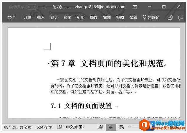 3、返回Word文档,即可看到文档已按照自定义的页边距尺寸来设置文档页边距,效果如图4所示。
