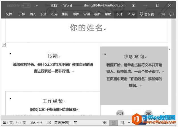 3、Word 2019下载该模板的同时会创建一个基于该模板的新文档,如图3所示。