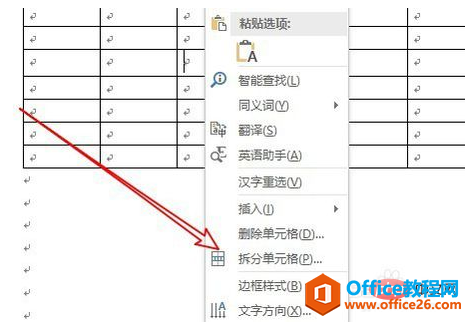然后右键点击该单元格,在弹出菜单中选择“拆分单元格”菜单项。