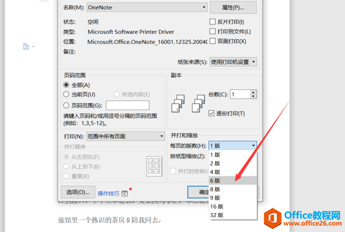这是会弹出一个打印的对话框,我们看到并打和缩放这一选项: