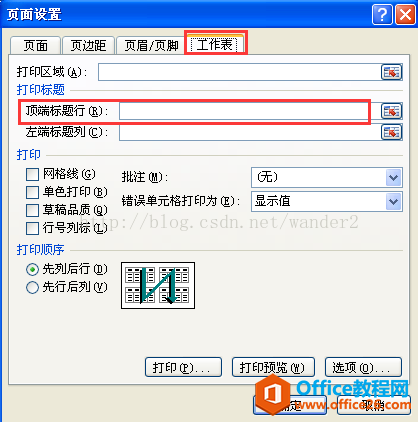 ②在弹出的菜单中,选择“工作表”-----“顶端标题行”