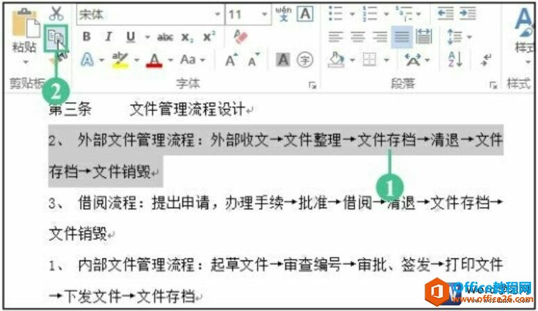 选择需要复制的文本,在“开始”选项卡下的“剪贴板”组中单击“复制”按钮,如下图4所示。