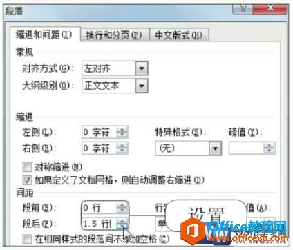 弹出“段落”对话框,在“间距”选项组下设置段后为“1.5行”,如下图4所示。