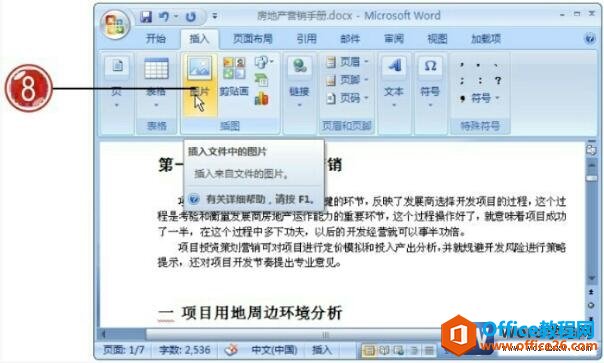 8、返回到文档中,为文档插入图片内容,切换到“插入”选项卡下,单击“图片”按钮。