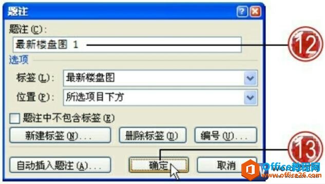 11、再次打开“题注”对话框,设置标签为“最新楼盘图”。