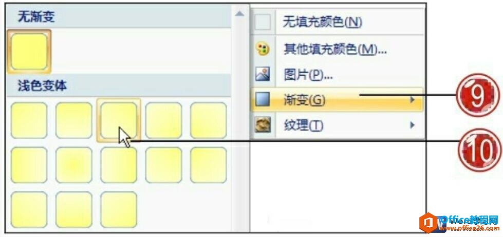 9、单击“形状样式”组中的“形状填充”按钮,在展开的列表中单击“渐变”选项。