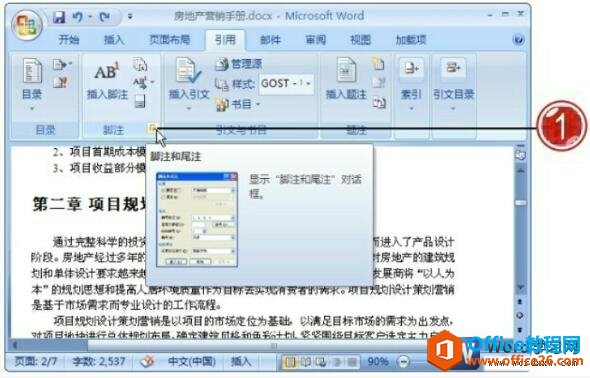 1、将光标放置在需要插入尾注的位置处,切换到“引用”选项卡下,在“脚注”组中单击对话框启动器按钮。