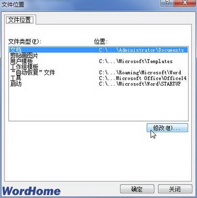 Word2010中自定义Word模板、Word文档、“自动恢复”文件等文件的位置