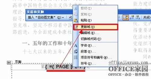 14、分别选中“{={PAGE}*2-1}”或“{={PAGE}*2}”,右击选择“更新域”。
