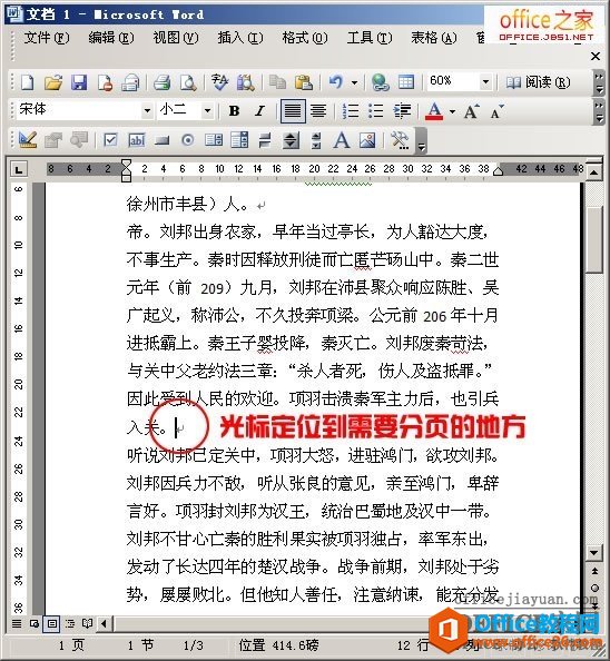 现在在Word2003中就已经分页成功了。