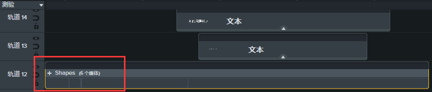 取消组合后我们可以获取三条轨道素材,其中我们可以看到前两条为本文的标注,也就说明这两条为本文内容,Camtasia所带的模板默认本文内容为该软件名称,接下来我们可以通过修改本文,来做出属于自己的开头动画。