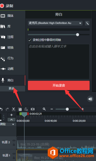 这个旁白其实是广义的,不仅是旁白,也可以是一些比较搞怪的BGM都可以,完全看你个人的想法,反正以达到视频效果为宜。他的添加也不难,找到更多中的旁白,点击录制就可以添加旁白,很简单就能操作。