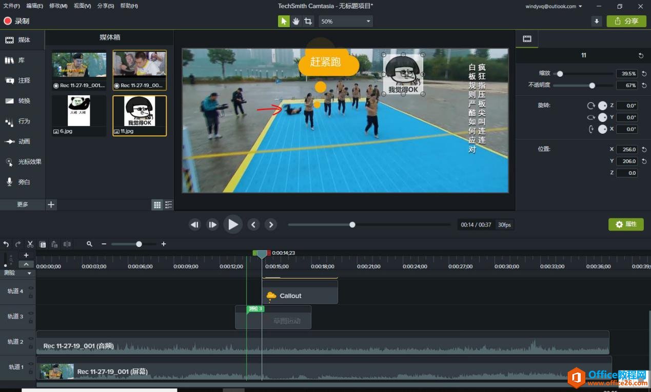 除了添加注释、添加表情包外,我们还可以使用Camtasia教程录制软件的行为特效,为注释、表情包等添加出现的特效,让视频更具动感气氛。只要将选中的行为特效拖拉到对应的注释或者表情上即可。