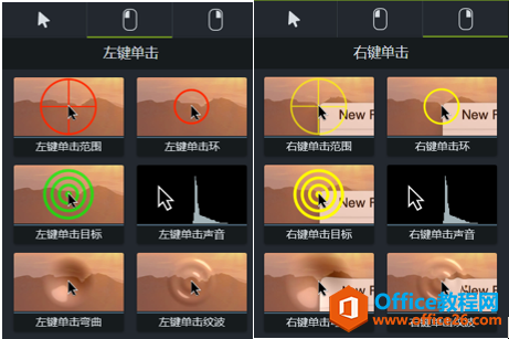 在Camtasia中,光标功能区主要是对光标效果和左右键单击时的击键效果进行设置。