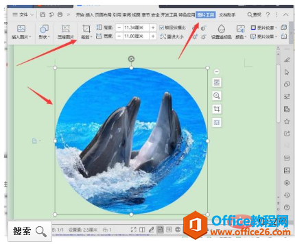 3、接下来在上方工具栏中选择“图片工具”-“剪裁”-“椭圆”,然后按住shift将剪裁图片即可。