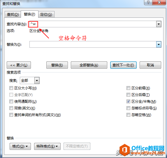 答:^p ,利用命令符可以快速的把空格替换掉。