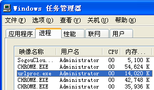 - 任务管理器中看到多个urlproc.exe进程同时运行;