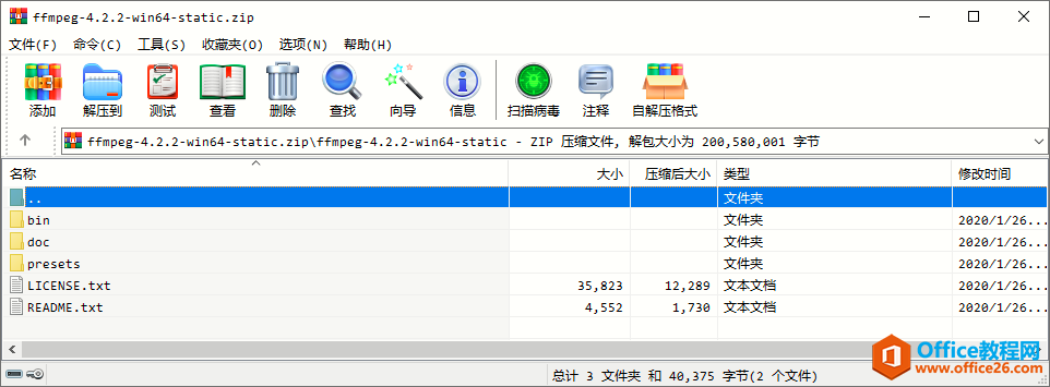 将下载到的软件包解压缩到指定的目录下,比如博主将软件释放到了"D:\Program Files\FFMpeg"中,然后,请务必记住你所选定的目录完整路径,接下来要用到它。