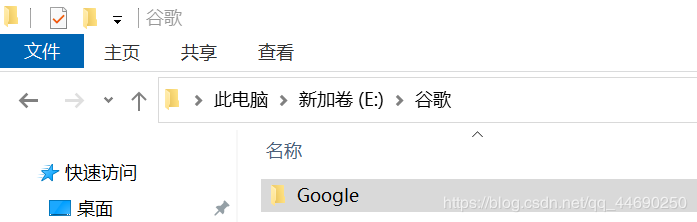 然后先在其他盘中,创建好想安装谷歌浏览器的首个文件夹:文件夹名称自己起(以我在E盘中创建谷歌为文件名为例,以下步骤皆是) 下面就是我创建好的E盘下文件名为谷歌的目录;