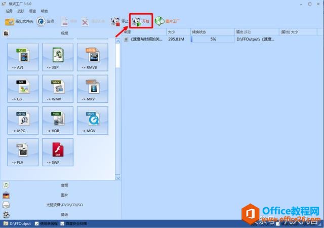 注:默认的文件夹是D:\FFoutput,也可以修改输出文件夹的位置。
