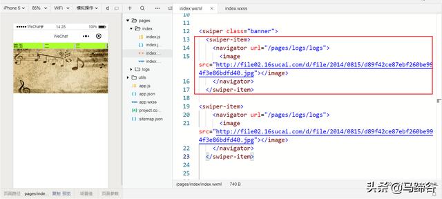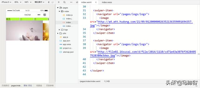 如上面所述,我们的代码开始编写了,首先,需要把swiper和swiper-item的代码写进去。