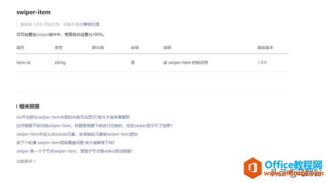 首先,按着老规矩,我们需要先打开微信小程序开发者文档,看一下关于swiper组件的相关内容: