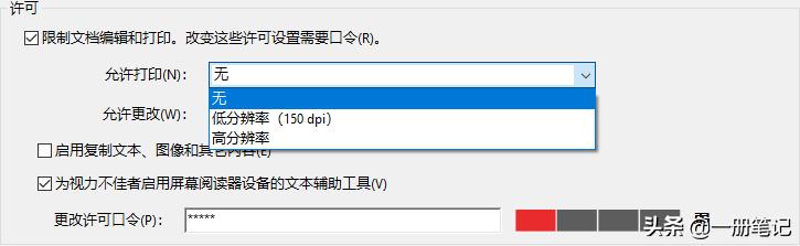 在这里,我们将“允许打印”与“允许更改”都设为“无”。