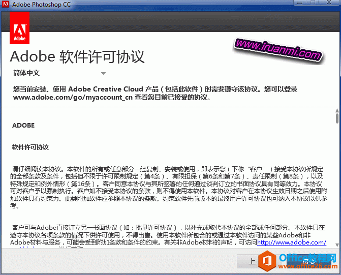 首先把下载好的Photoshop_14_LS20.7z解压(点击下载),双击Set-up.exe启动安装程序。如果出现此对话框,请选择忽略。