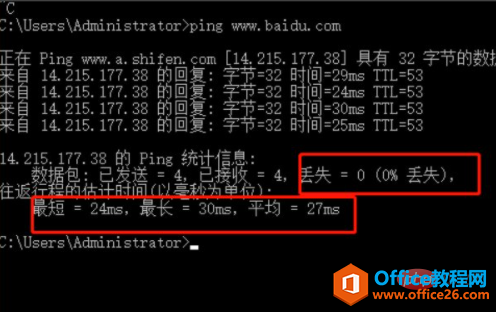 7、这是ping 默认网关,这时 ping www.baidu.com,