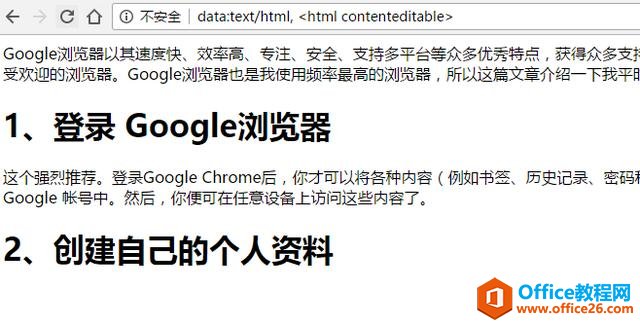 在地址栏中输入“data:text/html, ”,又可以变身本地文本编辑器。
