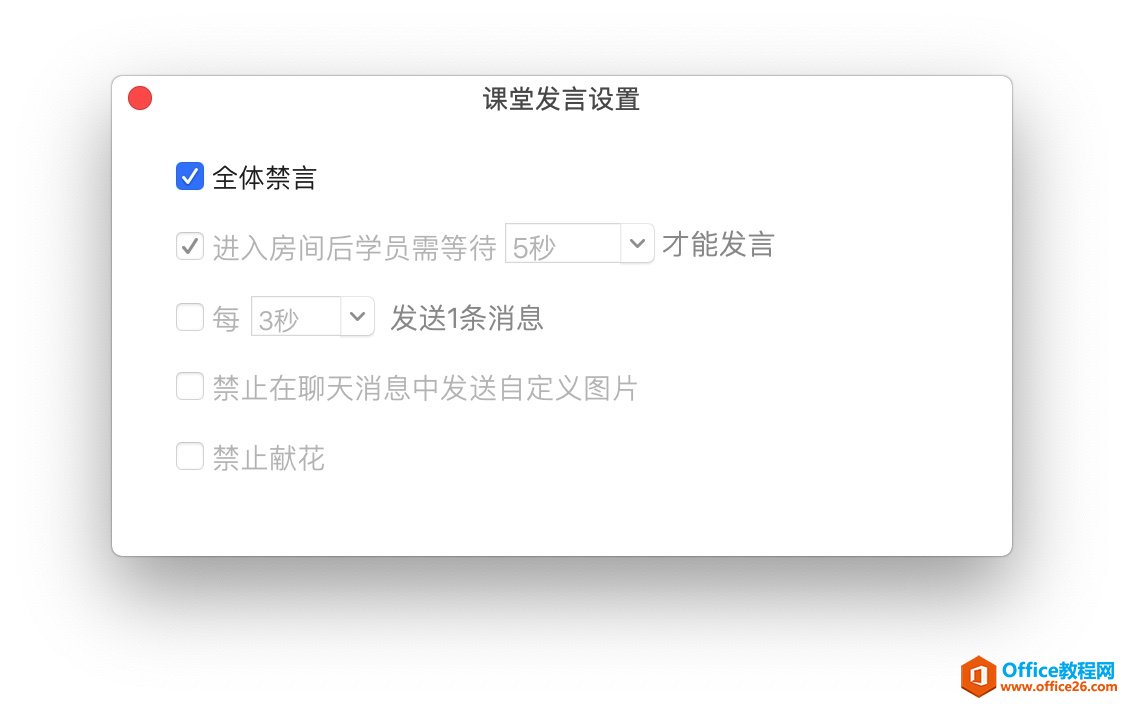推荐在教师讲解部分可以选择“全体禁言”,进入互动环节可以解除。