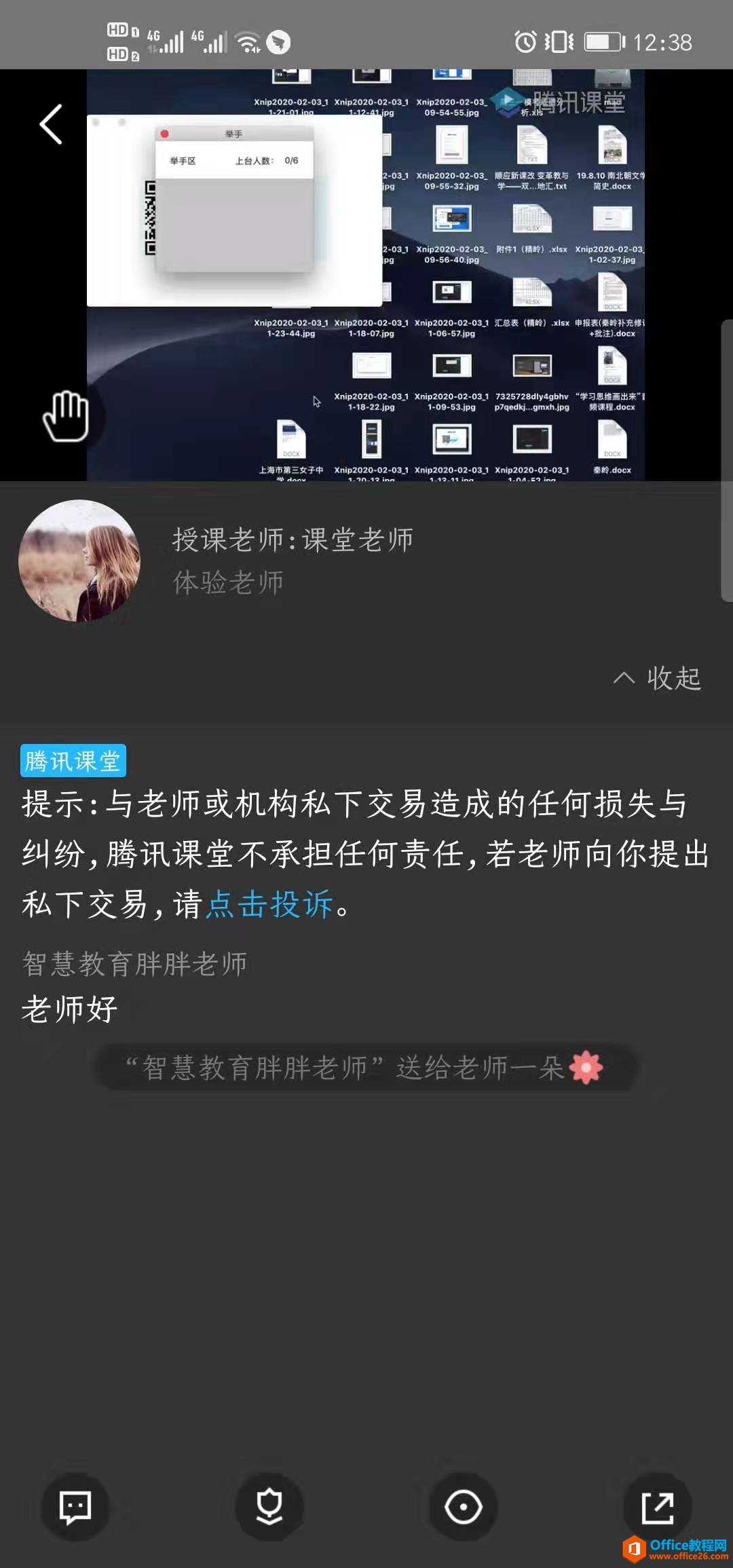 同时,通过腾讯课堂app端,教师可以向学生发起举手语音交流,最多同时支持6人上台发言。
