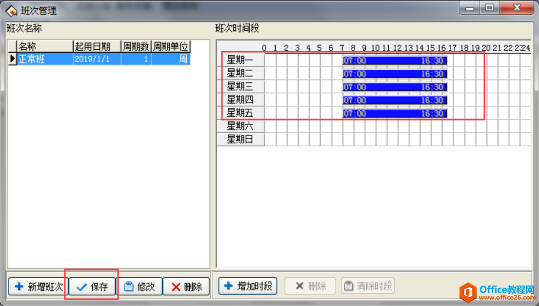 9、然后配置,班次管理,星期一到星期五上班,所以就选择星期一到星期五。