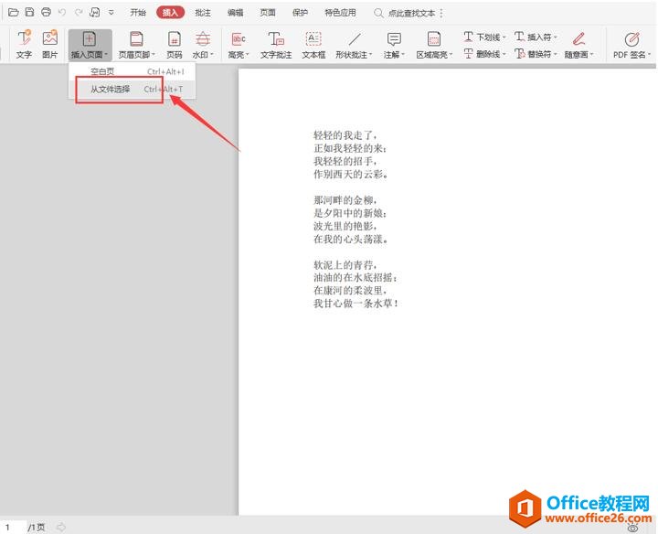 然后,切换到【插入】页面,选择【插入页面】选项;