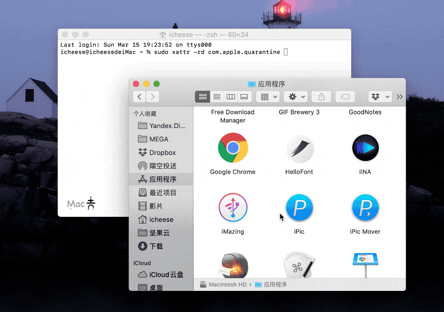 sudo xattr -rd com.apple.quarantine 空格 软件的路径