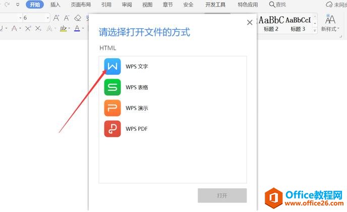 第六步:选择打开文件的方式为WPS文字: