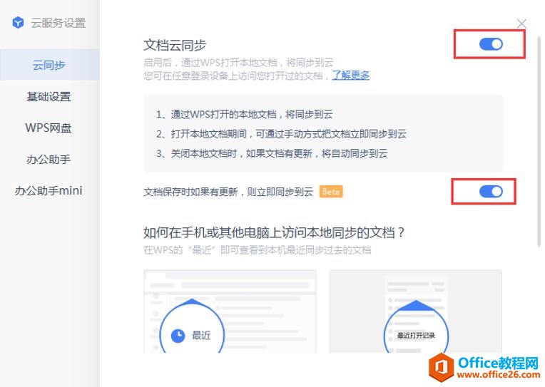 第四步,在对话框中选择【云同步】选项,打开云同步的两个选项按钮即可。