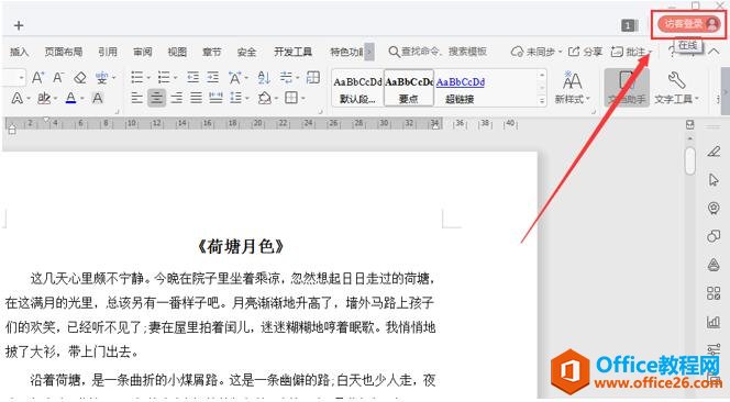 第一步,打开电脑端的WPS软件后点击右上角的【访客登录】。
